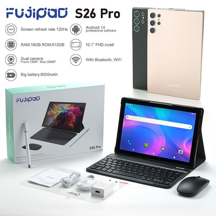 (Tặng bàn phím, chuột và bao da)Giá đặc biệt 1.68TR! ! ! Máy tính bảng Fujipad S26 Pro mới nhất, Màn hình HD 10.1 inch, 16GB+512GB, Hỗ trợ thẻ sim 5G, bộ xử lý snapdragon 7S Gen2.